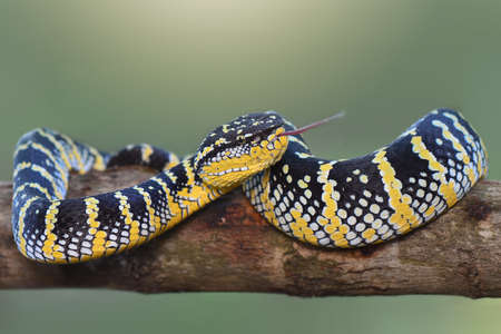 Close up of Wagler's Pit Viper Snake - Tropidolaemus wagleri
