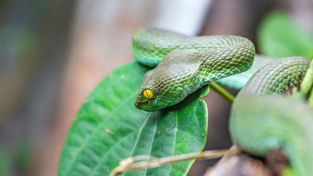 Close up of a pit viper (Trimeresurus trimeresurus)