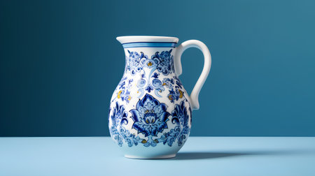 Close-up illustration of a ceramic jug, focusing on its intricate patterns, smooth glaze, and functional design. Ideal for themes related to kitchenware, home decor, and artisanal craftsmanship.