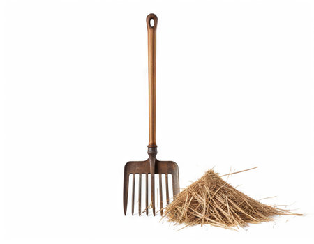 Pitchfork isolated on white background, perfect for rural lifestyle and agricultural themes