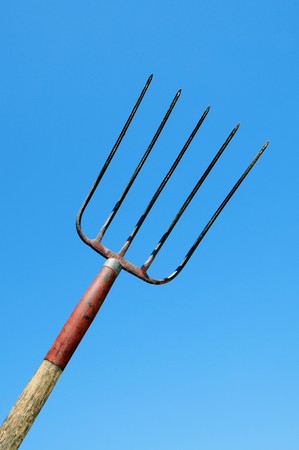 Old pitchfork on a white Working farm pitchfork isolated on white
