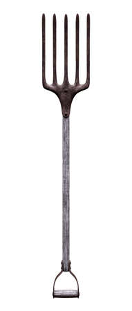 Old rusty garden pitchfork isolated on white background, clipping path included