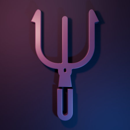 Purple Neptune Trident icon isolated on purple-blue background. Minimalism concept. 3D render illustration.