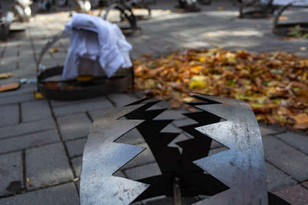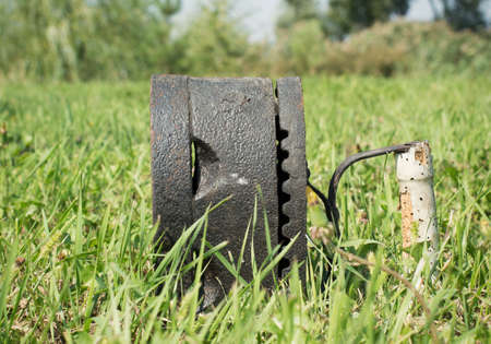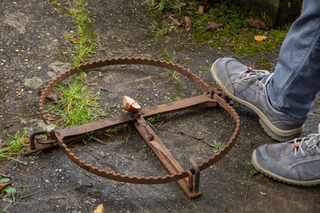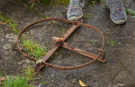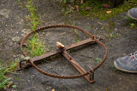 Old rusty iron trap in a forest for catching humans