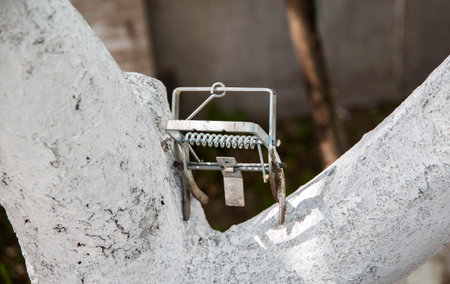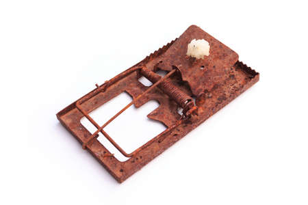 iron mousetrap isolated on white background waiting for the mouse