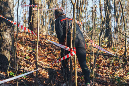 Athlete running outdoors in a forest on a autumn day