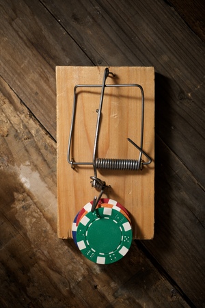 A wooden mousetrap with banknotes