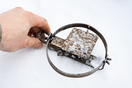 hunting traps in hand, closeup