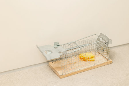Mousetrap with cheese near light wall