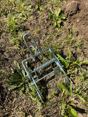 Mechanical mole trap made of galvanized steel.