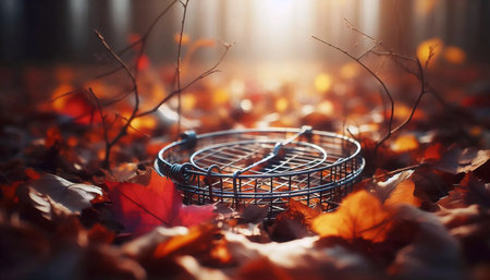 A snare trap set in undergrowth, Ai generated image