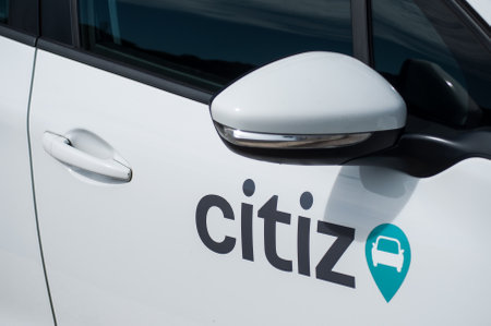 Mulhouse - France - 12 September 2019 - Closeup of Citiz logo on rental car parked in the street