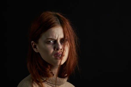 scared upset woman with bruises under eyes problems abuse depression