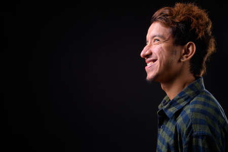 Photo image portrait of funny young attractive cute Asian man smiling happily
