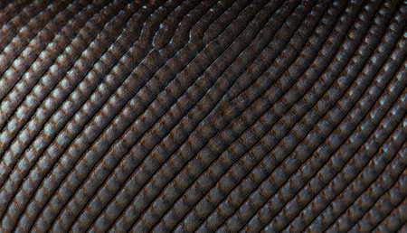 Close up of brown and cream patterned shiny coils of snakeskin. Nature, leather, skin, texture and design concept digitally generated image.