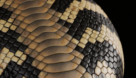 This close-up view reveals the stunning patterns and textures of a snake skin. Shades of brown, black, and cream create a mesmerizing design. Nature's artistry is on full display with these scales.