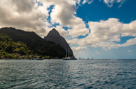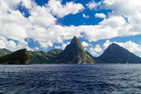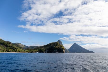 Famous St Lucia Twin Pitons in Soufriere captured from the Caribbean Sea