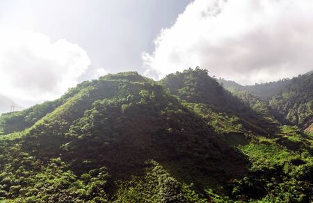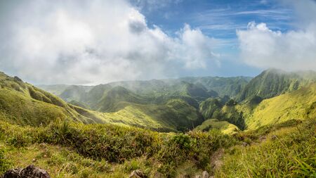 Mount Pelee green volcano hillside panorama, Martinique, French overseas department