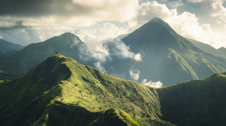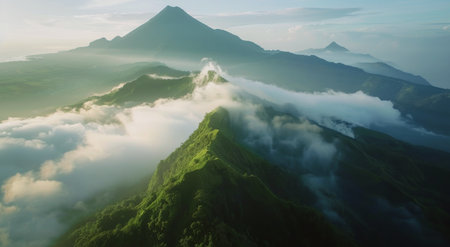Mystical Green Mountains Amidst the Clouds