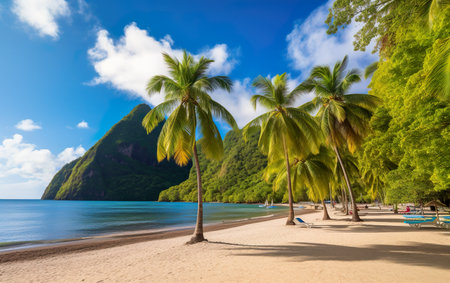Beautiful white sand beach in Saint Lucia, Caribbean Islands