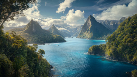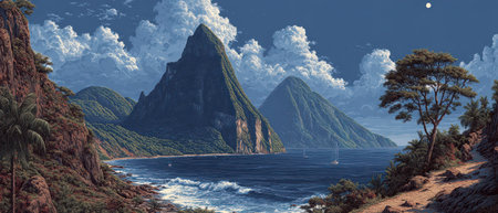The Pitons are two volcanic mountains representative landmarks for Saint Lucia, Caribbean