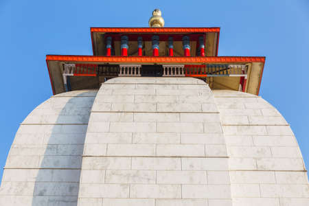 Close up of white Hindu marble skin temple with red roof in the area of Siddhesvara Dhaam in Namchi. Sikkim, India.