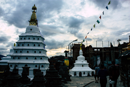 Kathmandu Nepal August 23, 2018 View of the temple located at the top of the Monkey temple in Swayambhunath area in Kathmandu in the evening