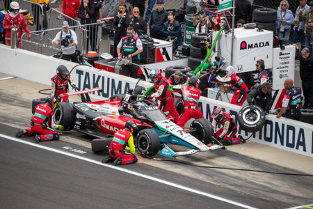 NTT INDYCAR SERIES driver, Takuma Sato (75) of Tokyo, Japan, comes down pit road for service during the 109th Running of the Indianapolis 500 at Indianapolis Motor Speedway in Speedway, IN.
