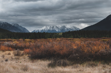 Landscape panorama of Banff National Park in Canada with snow capped mountain