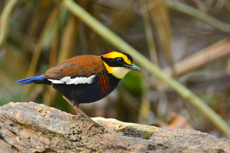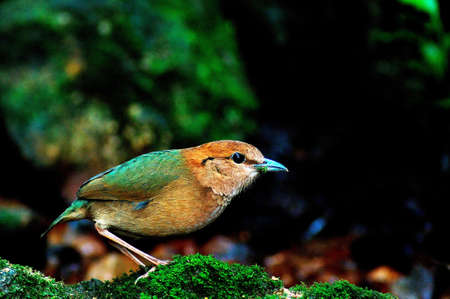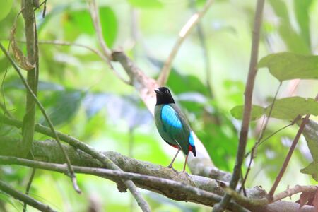 Hooded pitta ( pitta sordida ) making a living in their habitat.