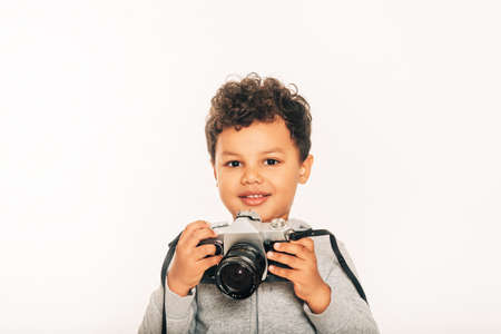 Photo portrait of adorable little caucasian young happy boy looking at camera.