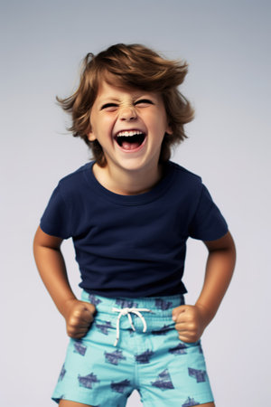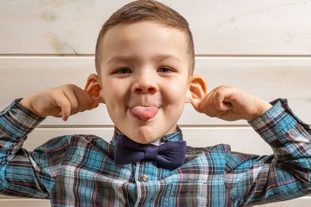 photo of young emotional boy on bright background