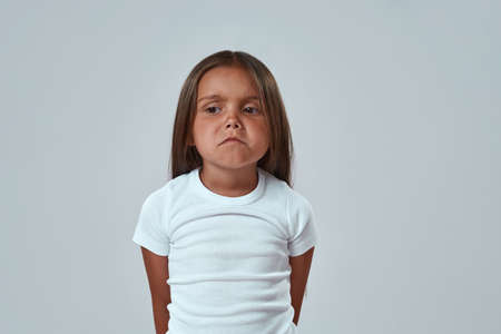 Partial image of offended little girl looking away