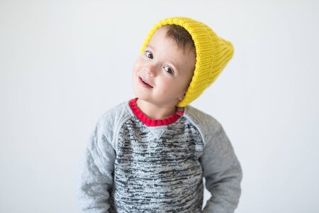 funny cute kid in knitted hat