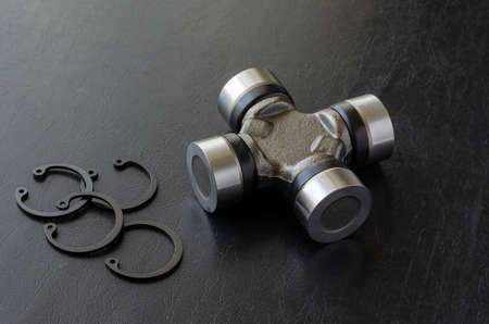 New cross joint for propeller shaft. Trade Auto parts, car service. Automotive industry. Selective focus.