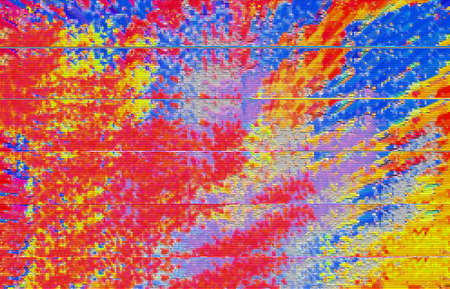 Digital glitch effect with vivid scan lines and distorted colors reminiscent of old TV screens