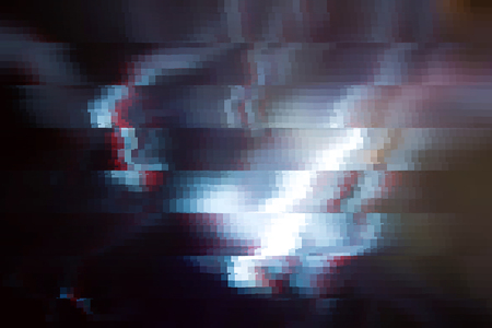 Distorted digital artifacts create vibrant fragments of color and light patterns
