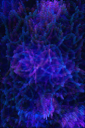 This artwork showcases dynamic streaks of blue and purple colors set against a dark background, creating a sense of movement and energy. The design evokes a futuristic or digital aesthetic.