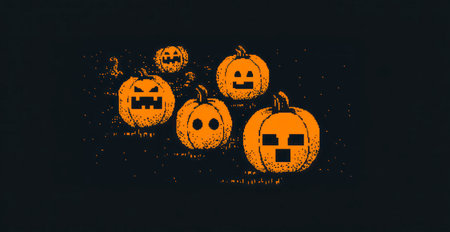 Halloween pumpkins with scary faces. Vector illustration in retro style.