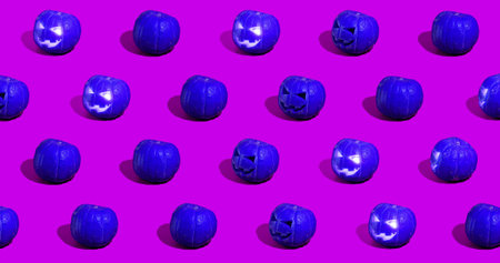 Halloween pumpkins Jack oLantern on purple background.
