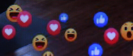 Macro photo of screen pixels with icons. Extreme close-up. High resolution photo. selective focus.
