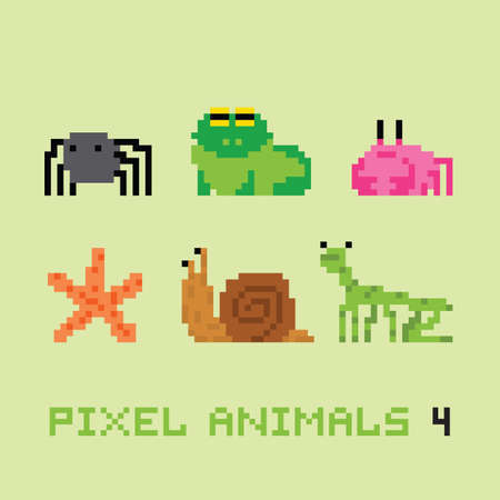 Pixel art style animals cartoon vector set 4