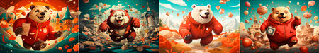 A fun and playful design featuring a cartoon bear. Creatively illustrates the concept of making money or saving. Attracts a younger, more carefree audience.
