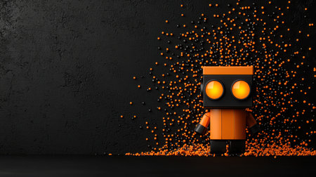 This imaginative digital artwork features a playful robot with glowing orange eyes, surrounded by vibrant orange spheres against a dark background, showcasing creativity and modern design.
