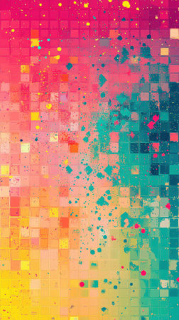 Colorful abstract background features vibrant squares and gradients that create a dynamic visual effect, perfect for artistic expressions and design projects