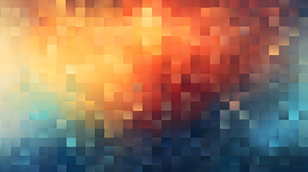 A dynamic abstract background featuring a pixelated gradient transitioning from deep blue to bright orange, creating a modern and energetic visual.
