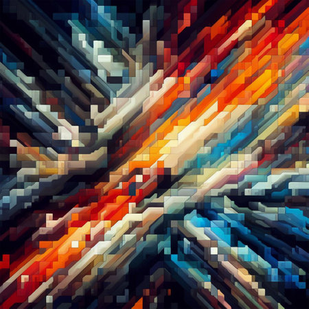 Diagonal colorful light streaks with pixel texture. Generative AI