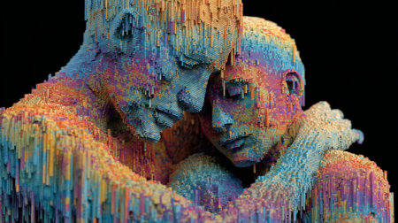 A digital mosaic--waves of tiny squares form an abstract tapestry. Each pixel holds a secret--coded messages, hidden algorithms, and encrypted memories.