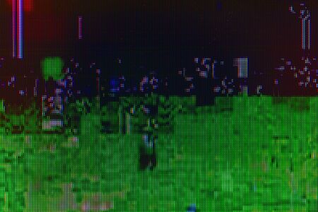 Photography of damaged television signal, digital pixel noise glitch