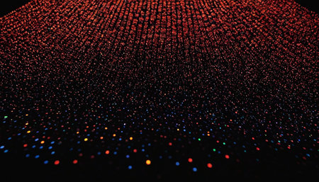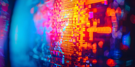 Abstract Colorful LED Light Display Panel Digital Art Technology Background red blue dark glow grid